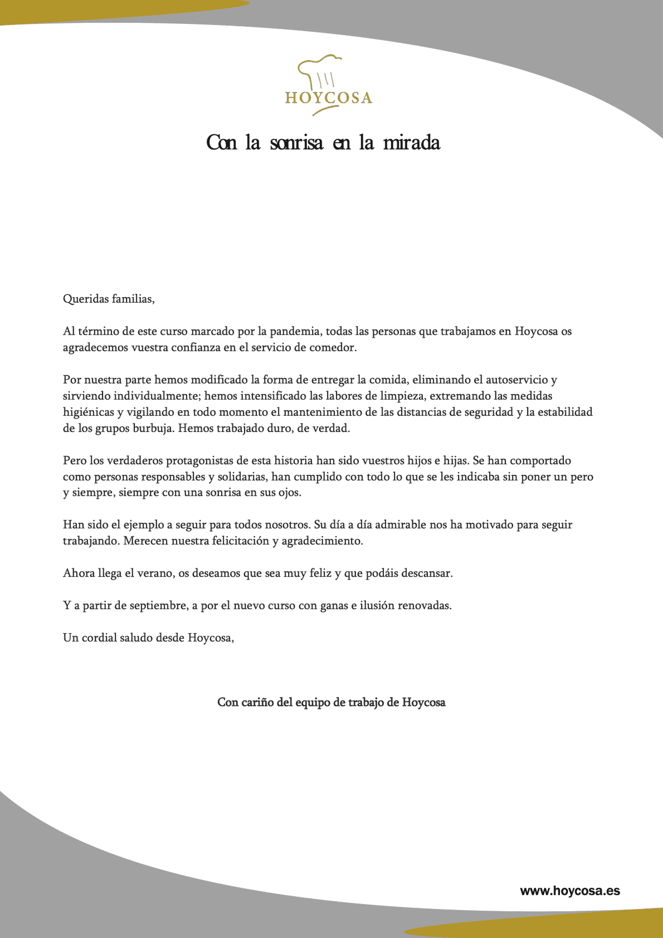 Carta Agradecimiento Alumnado, Padres y Madres